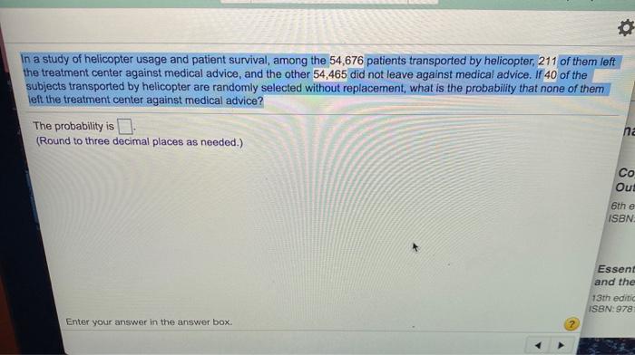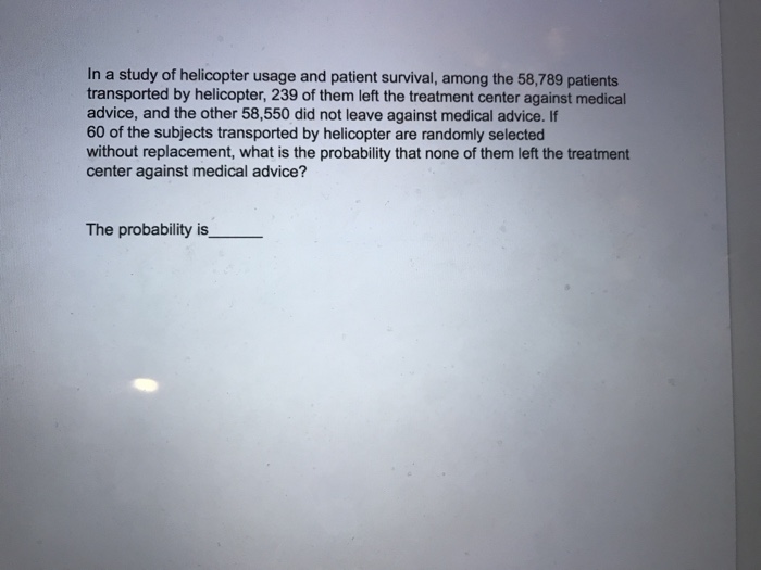 Solved In A Study Of Helicopter Usage And Patient Survival Chegg Com